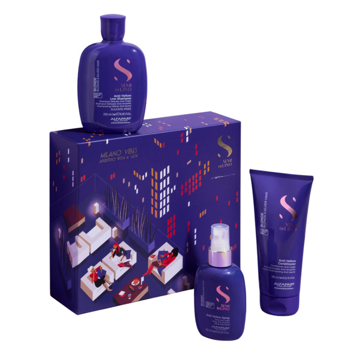The Alfaparf Milano Vibes Semi di Lino Blonde Holiday Trio Kit is the perfect solution for maintaining vibrant blonde hair.