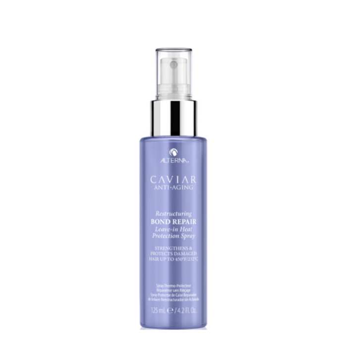 Alterna Caviar Restructuring Bond Repair Leave-in Heat Protection Spray 125ml is a nourishing and protective hair spray that helps to repair and prevent damage caused by heat styling, while also adding shine and smoothness to the hair.