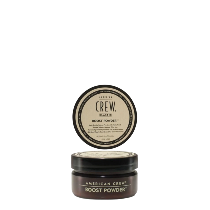 American Crew Boost Powder 10g is a weightless powder that adds grit for dramatic, gravity-defying texture, giving hair lift, thickness, and a matte finish.