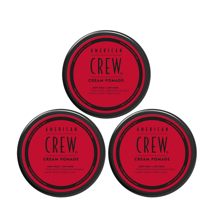 American Crew Cream Pomade Trio Bundle is a pack of three 85g moisture-rich cream pomades that provide a natural look while taming hair and leaving a low shine finish.