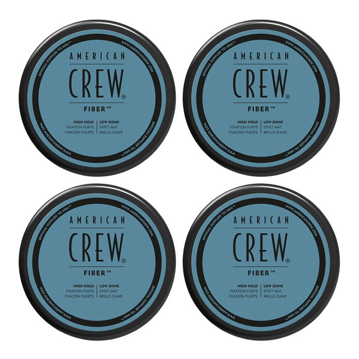 The American Crew Fiber Quad Bundle contains four 85g jars of fiber-like, resinous product that helps thicken, texturize, and increase fullness to hair, providing a strong, pliable hold with a matte finish that works well in shorter hair, 1-3 inches in length.