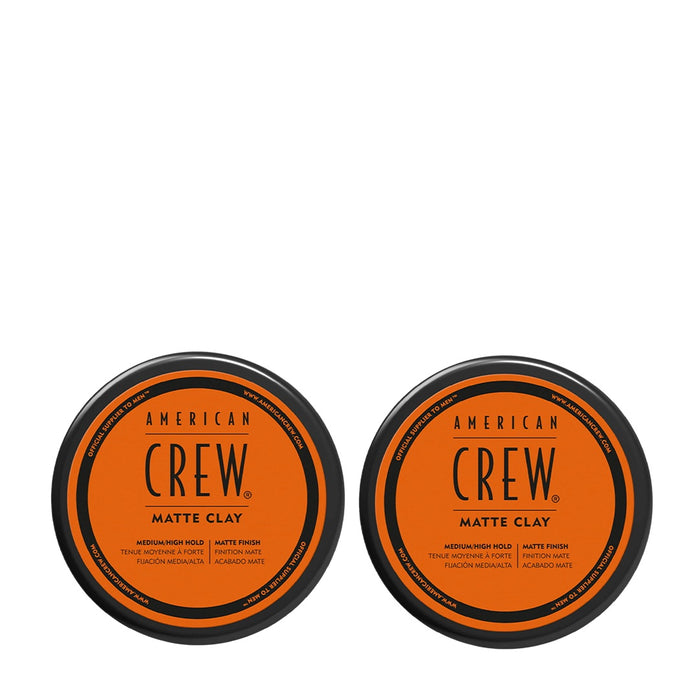 American Crew Matte Clay Duo Bundle contains two 85g jars of texturizing clay that provide a workable medium hold and a silky matte finish, making it ideal for creating a wide range of hairstyles for shorter to medium length hair.