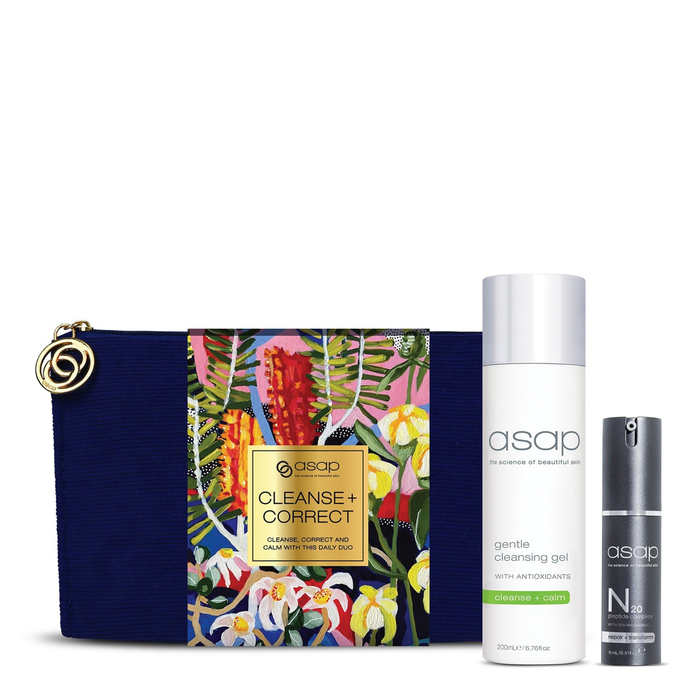 This carefully curated pack combines the power of gentle cleansing with advanced peptide technology to deliver a comprehensive skincare routine. Designed to cleanse, correct, and enhance your skin's natural radiance, the asap Cleanse & Correct Pack is perfect for those seeking a simple yet effective skincare regimen. With a focus on quality ingredients and proven results, this pack is ideal for maintaining healthy, glowing skin.