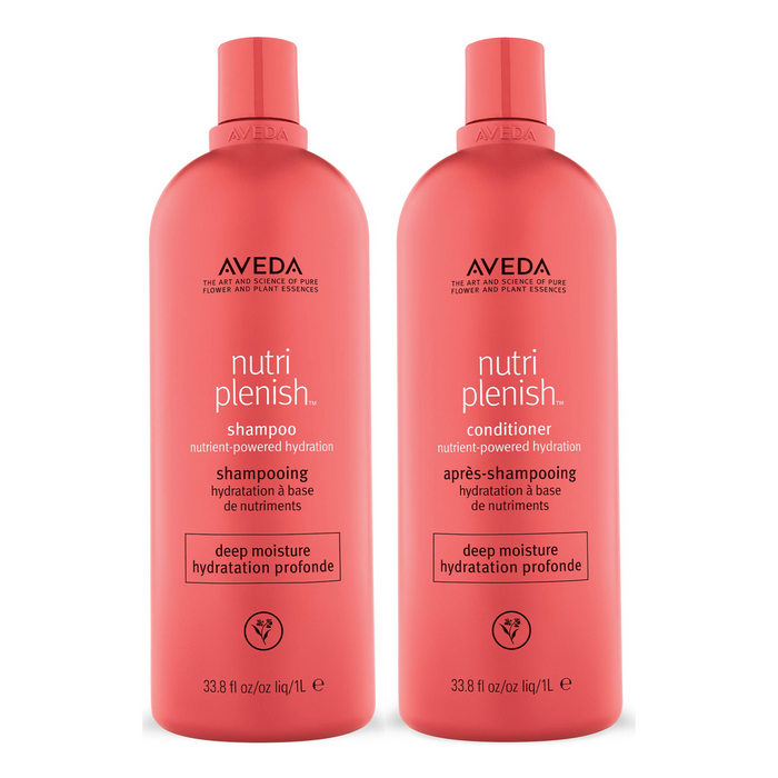 The Aveda Nutriplenish™ Deep Moisture Litre Duo Bundle is a luxurious hair care set designed to deeply hydrate and nourish your hair.