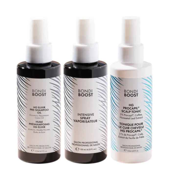 The Bondi Boost Treatment Trio Bundle is a comprehensive hair care solution designed to revitalize and strengthen your hair.