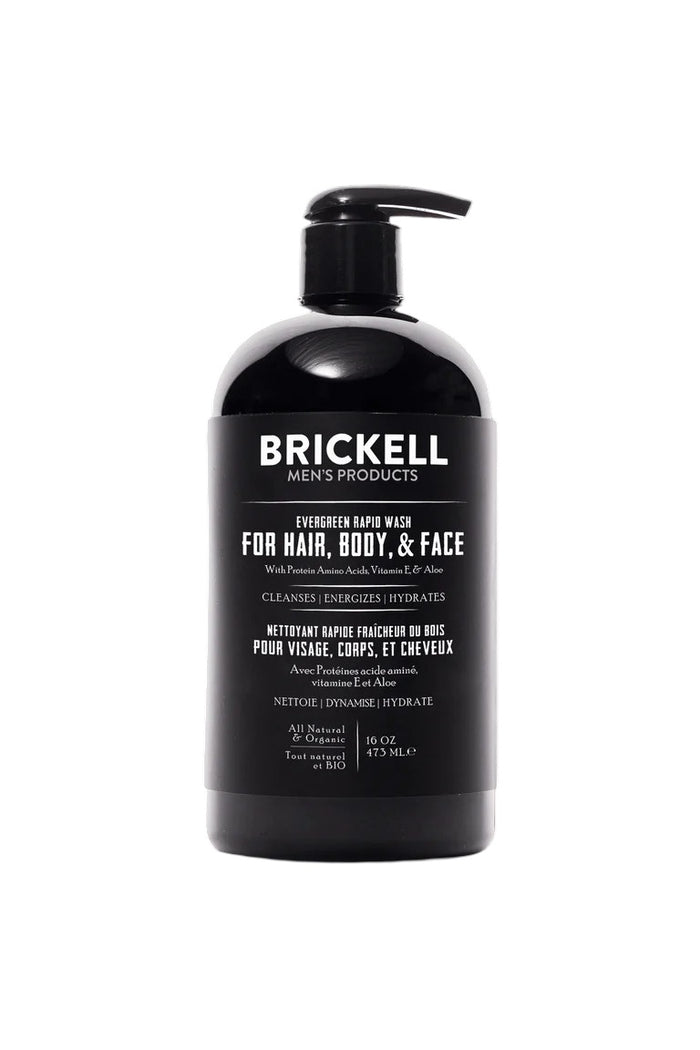 The Brickell All in One Wash 473 ml - Evergreen is a versatile grooming product designed for the modern man.