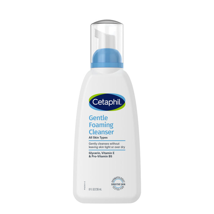 Cetaphil Gentle Foaming Cleanser for all skin types gently removes dirt, oil and makeup without over-drying your skin or leaving it feeling tight. This mild foaming facial cleanser has a hypoallergenic, fragrance-free formula and is dermatologist-tested for sensitive skin.