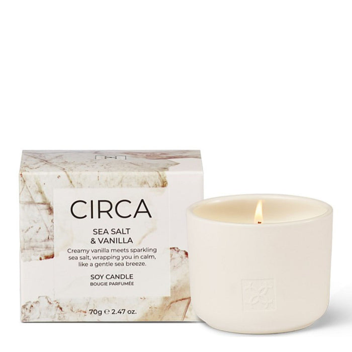 The CIRCA Candle 70g - Sea Salt & Vanilla is a luxurious scented candle that brings a refreshing and calming ambiance to any space.