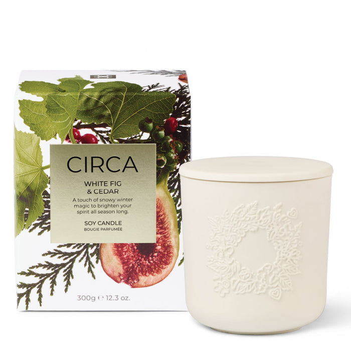 Experience the enchanting aroma of the CIRCA White Fig & Cedar Christmas Candle 300g.