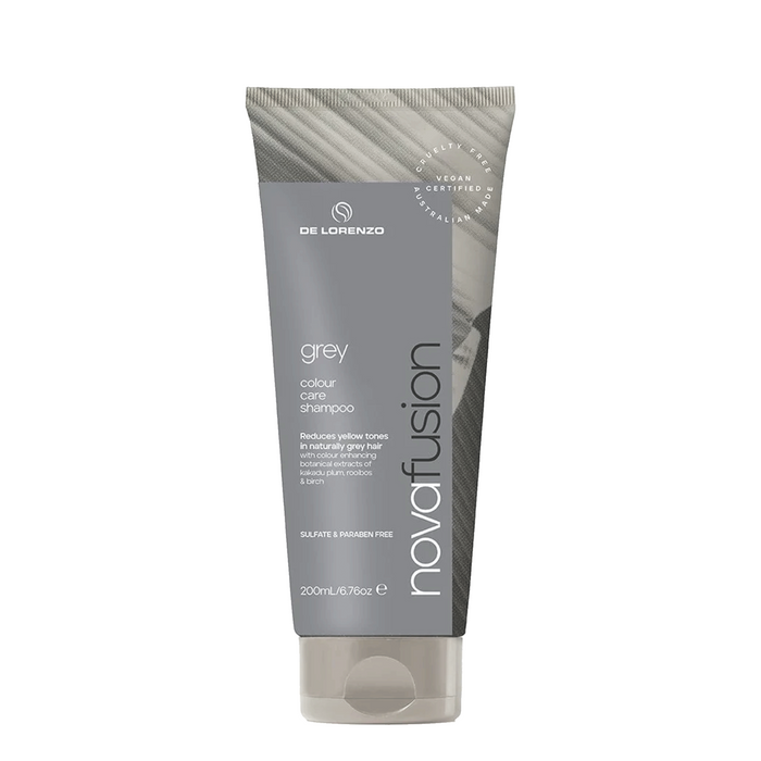De Lorenzo Novafusion Colour Care Shampoo Grey 200ml is a colour care shampoo formulated with purple neutralising pigments to counteract unwanted yellow tones in naturally grey to white hair.