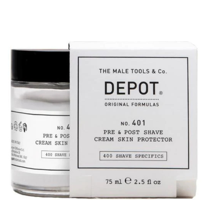 The Depot No. 401 Pre & Post Shave Cream Skin Protector 75ml is a versatile grooming essential designed to enhance your shaving experience.