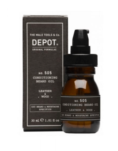 What are the benefits and features of Depot No. 505 Conditioning Beard Oil Leather & Wood 30ml?- Nourishes, conditions, and gives control and shine to the beard.
