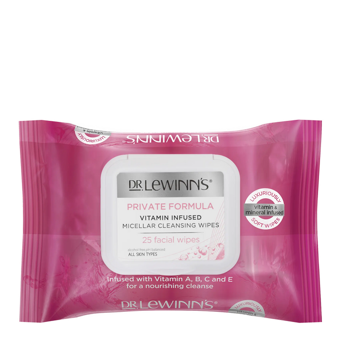 Dr. LeWinn's Micellar Wipes x 25 are private formula vitamin-infused micellar cleansing wipes that gently cleanse, hydrate, and lift away makeup and impurities in one easy step.