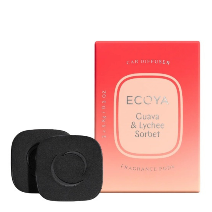 Experience a burst of tropical delight with the ECOYA Car Diffuser Refill - Guava & Lychee Sorbet.