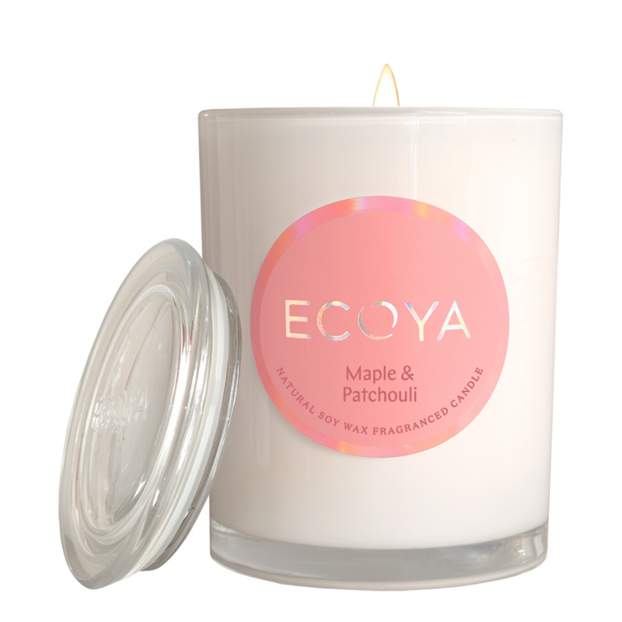 Experience the enchanting aroma of the ECOYA Metro Candle 270g - Maple & Patchouli.