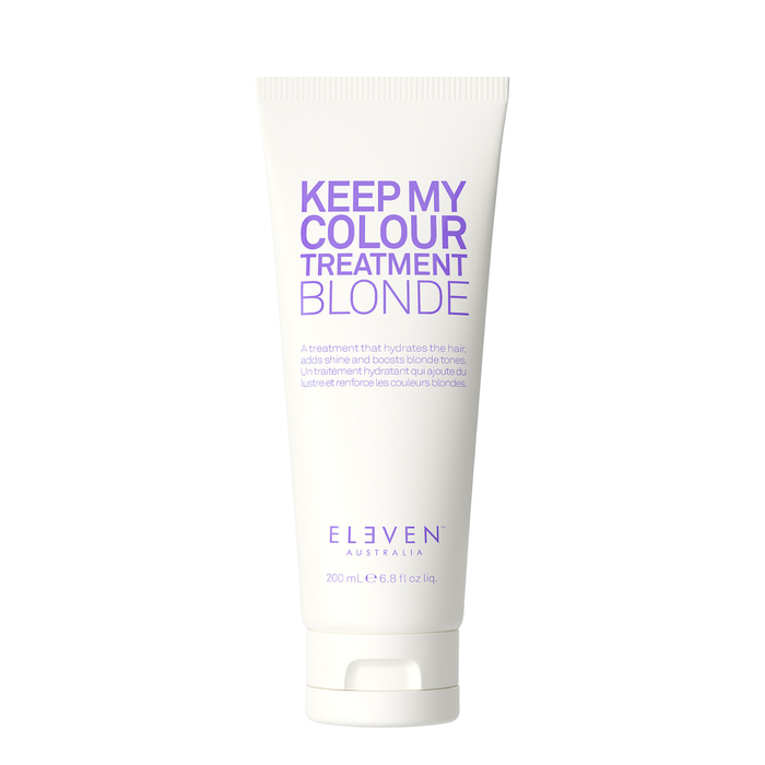 ELEVEN Australia Keep My Colour Blonde Treatment 200ml is a rinse-out deep conditioning treatment that adds shine and tones hair to reduce brassy yellow tones in bleached and lightened hair.