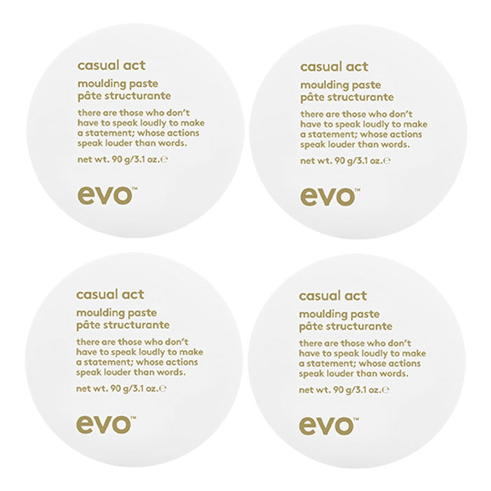 The Evo Casual Act Moulding Paste 90g Quad Bundle offers a light hold with a matte finish for effortless styling.
