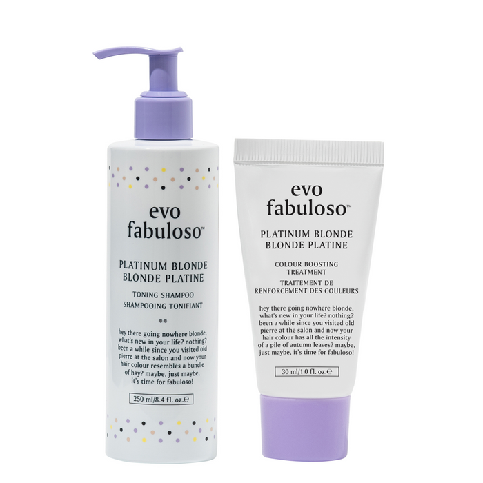 The Evo Fabuloso Platinum Blonde Shampoo and Colour Boosting Treatment Duo Bundle is your go-to solution for maintaining vibrant, platinum blonde hair.