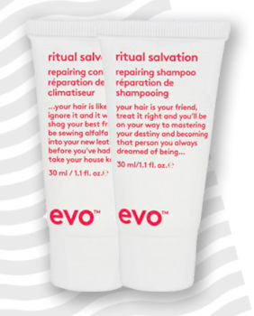 Ritual Salvation 30ml Duo is a haircare product that includes a shampoo and conditioner that work together to repair and strengthen damaged hair.