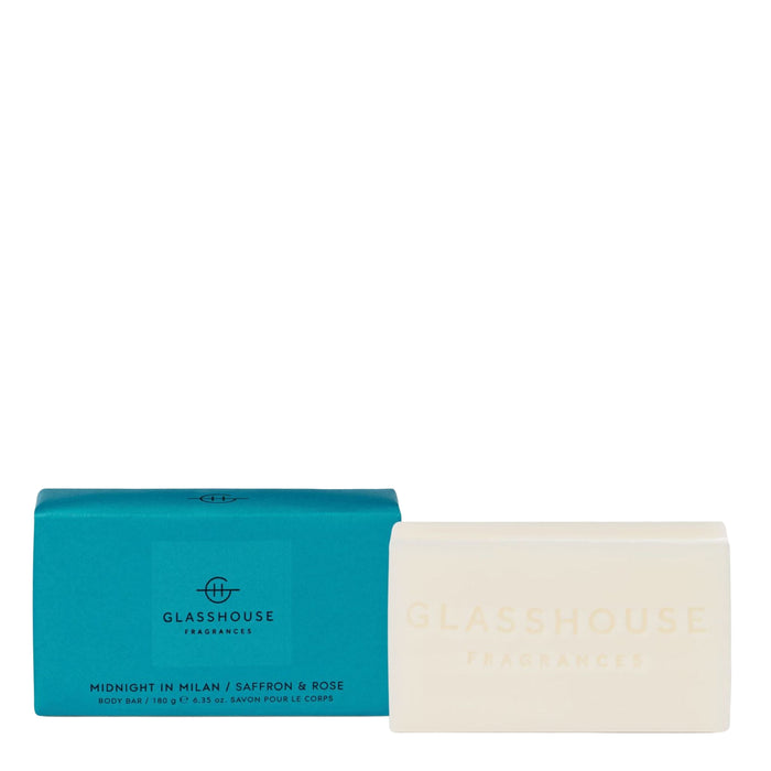 The Glasshouse Fragrances MIDNIGHT IN MILAN Body Bar 180ml is a luxurious soap that elevates your bathing experience.