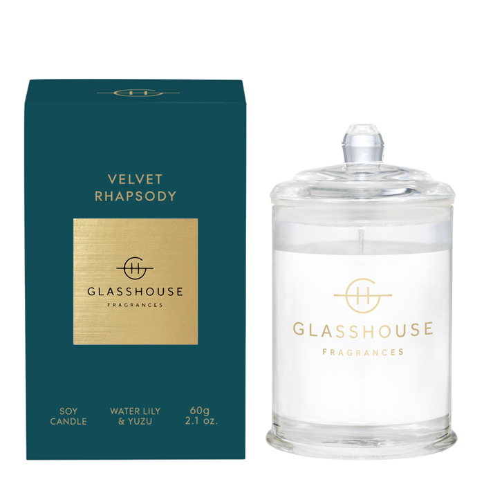 The Glasshouse Fragrances VELVET RHAPSODY Candle 60g is a luxurious candle that captures the essence of a secret garden in full bloom.