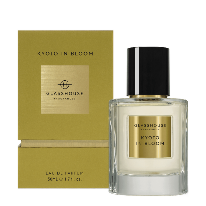 What are the benefits and features of Glasshouse KYOTO IN BLOOM Eau De Parfum 50ml?- A perfect balance of sweet and floral scents.
