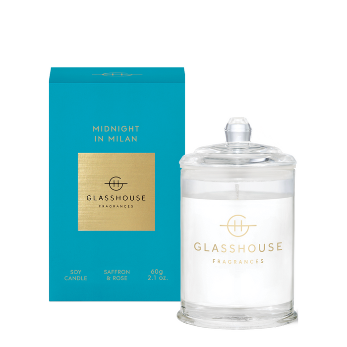 Indulge in the captivating aroma of the Glasshouse MIDNIGHT IN MILAN Candle. This luxurious candle is handcrafted with the finest ingredients to create a mesmerizing fragrance that will transport you to the romantic streets of Milan. With a burn time of up to 20 hours, this 60g candle will fill your space with a warm and inviting scent that lingers long after it has been extinguished.