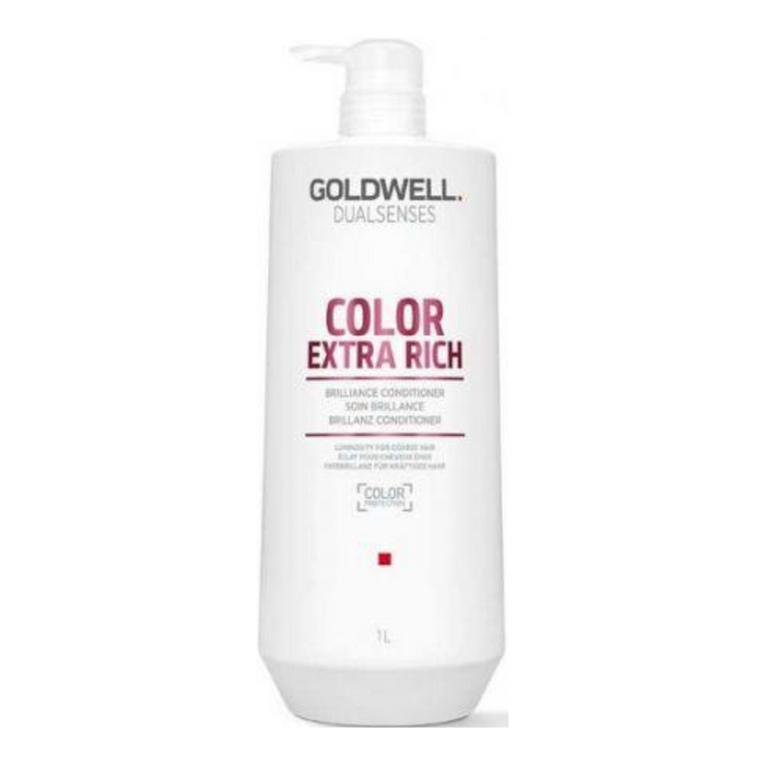 Goldwell Dualsenses Color Extra Rich Brilliance Conditioner 1000ml provides instant detangling and color luminosity for both colored and non-colored coarse hair.