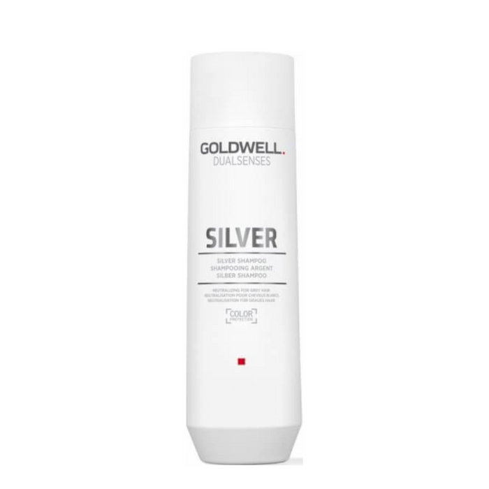 Goldwell Dualsenses Silver Shampoo 300ml is a neutralizing shampoo specially formulated for grey and cool blonde hair, blended with microPROTEC complex and Luminescine to neutralize unwanted yellow tones and instantly refine cool effect while minimizing color fading with every use.