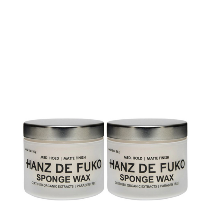 The Hanz De Fuko Sponge Wax Duo Bundle contains two 56g jars of Hanz De Fuko Sponge Wax, a hybrid wax that combines the pliability of a pomade with the staying power of a gel, providing absolute control over the hair for everything from textured, bed-head looks to more polished coifs.