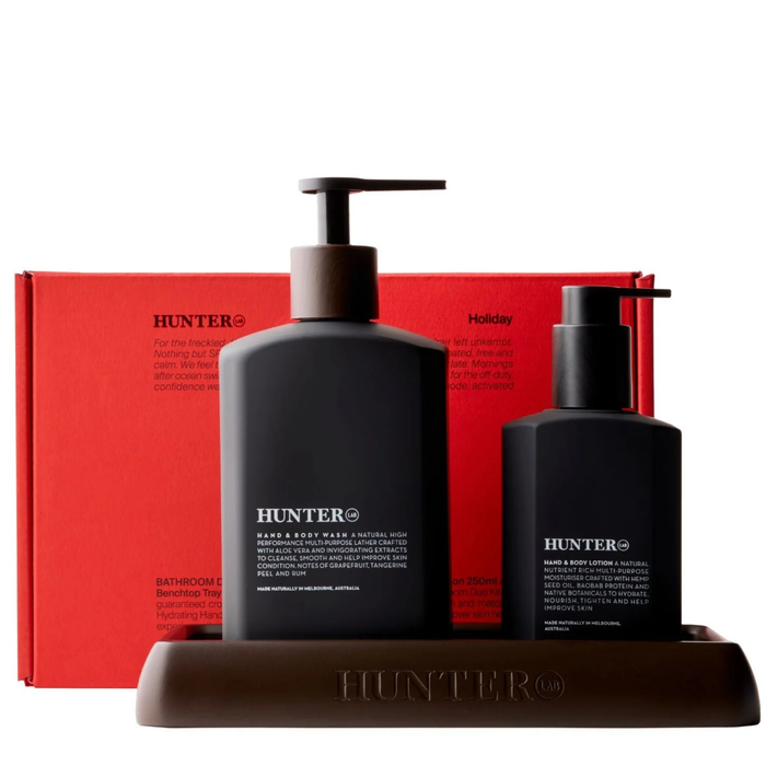 This set features Hunter Lab's signature Hand & Body Wash and Hydrating Hand & Body Lotion. It's designed to pamper your skin and delight the senses with its smooth texture and irresistible fragrance, making it perfect for yourself, someone special, or both.