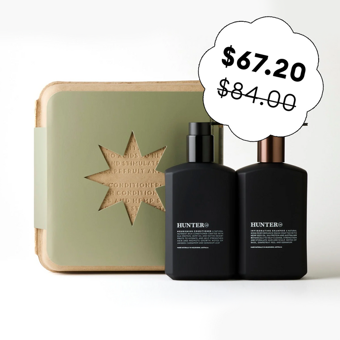 This exclusive hair care kit from Hunter Lab includes everything you need to keep your hair looking and feeling its best. The kit features the Invigorating Shampoo and Nourishing Conditioner, both in generous 550ml bottles, ensuring you have plenty of product to last through the holidays and beyond. Formulated with natural ingredients, these products are designed to cleanse, hydrate, and nourish your hair, leaving it healthy and vibrant.