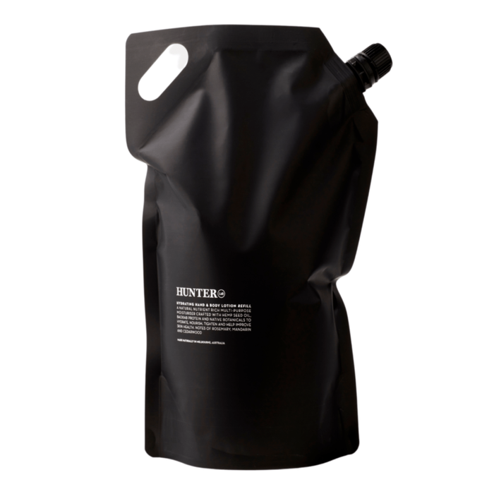 What are the benefits and features of Hunter Lab Hydrating Hand & Body Lotion 1000ml Refill?- Deeply hydrates and nourishes the skin.