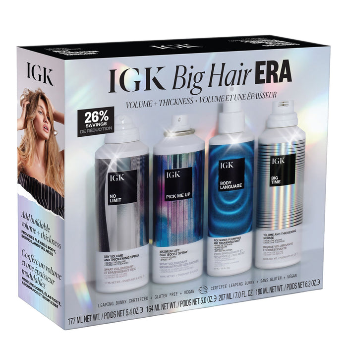 The IGK Big Hair Era Quad Pack is your ultimate solution for achieving voluminous, thick hair.