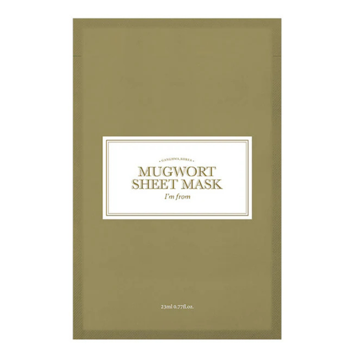 The I'm From Mugwort Sheet Mask 23ml is a soothing and hydrating facial mask infused with mugwort extract.