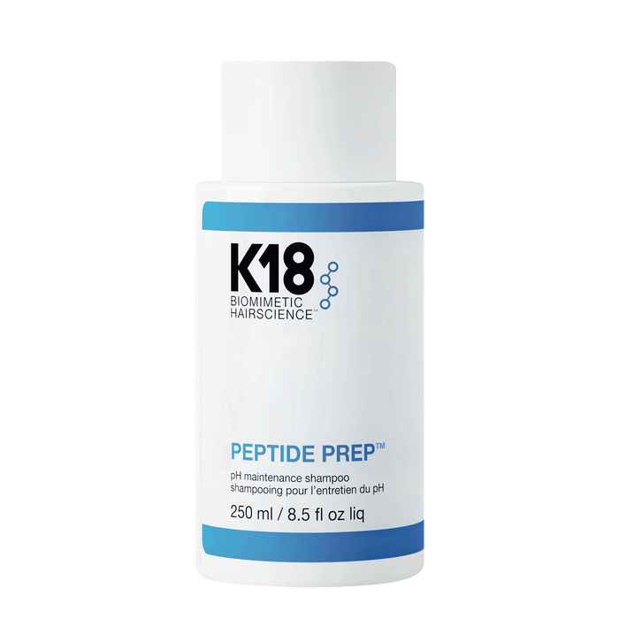 What are the benefits and features of K18 pH Shampoo 250ml?- Thoroughly cleanses hair and scalp without stripping or drying.