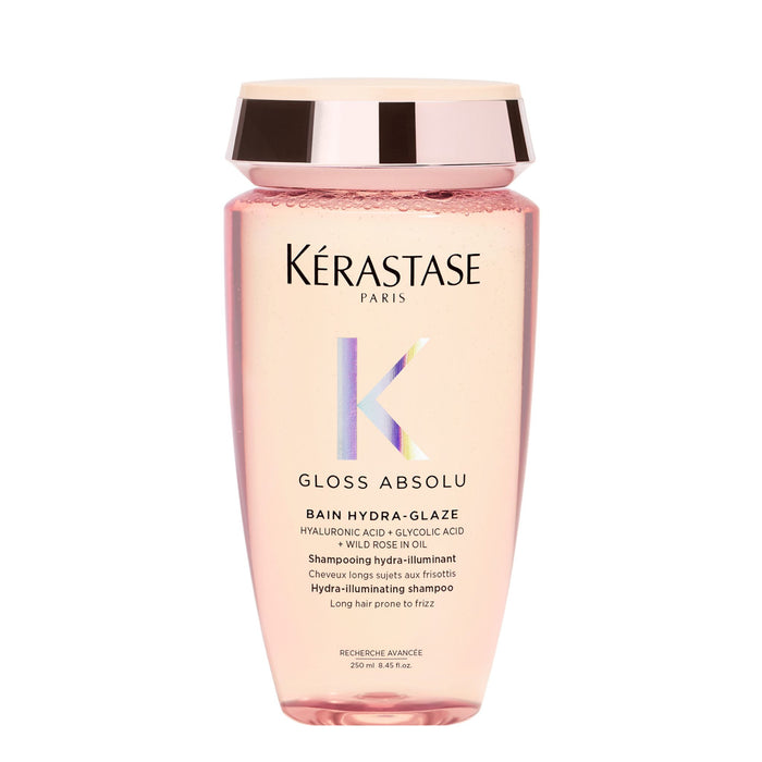 The Kérastase Gloss Absolu Bain Hydra-Glaze Shampoo 250ml is a luxurious hair care product designed to enhance shine and hydration.