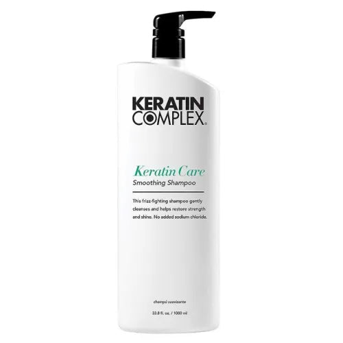Keratin Complex Keratin Care Shampoo 1000ml is a protective blend of keratin, wheat, and soy proteins that gently cleanses the hair without diminishing essential keratin and moisture.