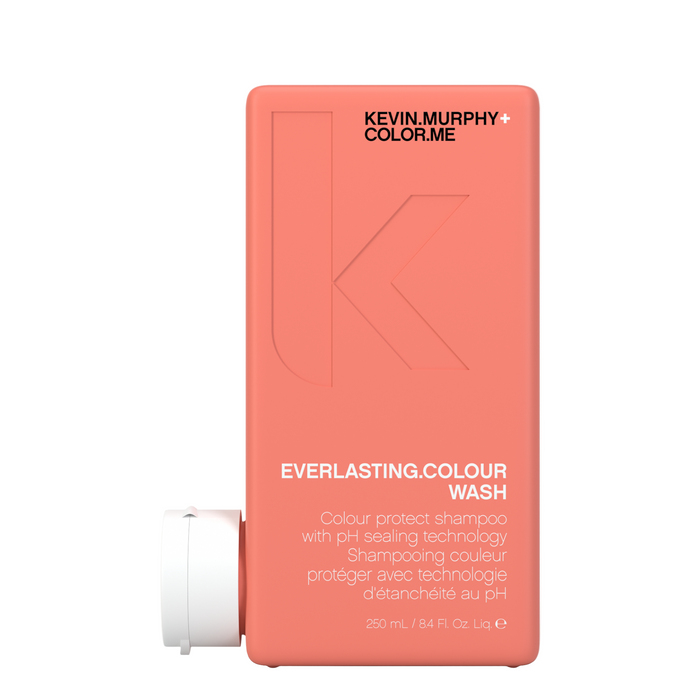 Kevin Murphy Everlasting.Colour Wash 250ml is a sulphate-free pH balanced shampoo that gently cleanses and closes the cuticle for a shine that helps to lock colour in while protecting hair strands from hard water mineral accumulation to guarantee brilliance.