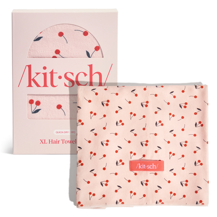 The Kitsch XL Hair Towel Wrap - Cherry Print is a stylish and functional accessory for drying your hair quickly and efficiently.