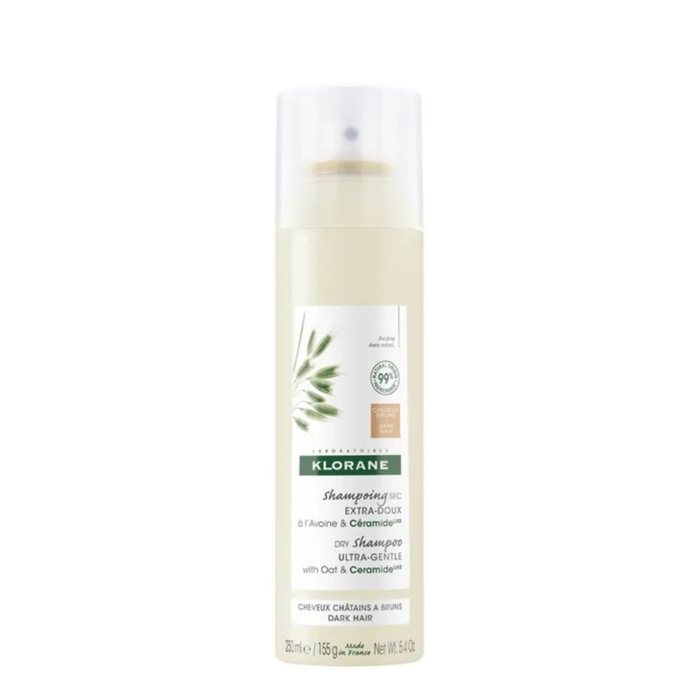 A dry shampoo designed specifically for dark hair, Klorane Dry Shampoo with Oat and CeramideLIKE Dark Hair Tinted 250ml