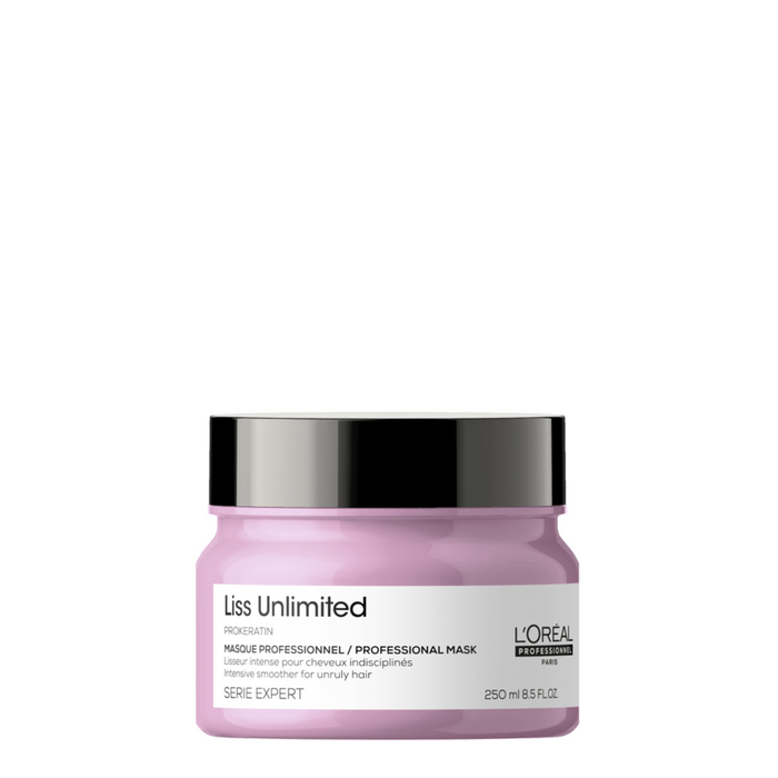 The L'Oréal Professionnel Liss Unlimited Mask 250ml provides nourishment and Pro-Keratin for smoothing and controlling rebellious hair, leaving it glossy and frizz-free for up to 4 days.