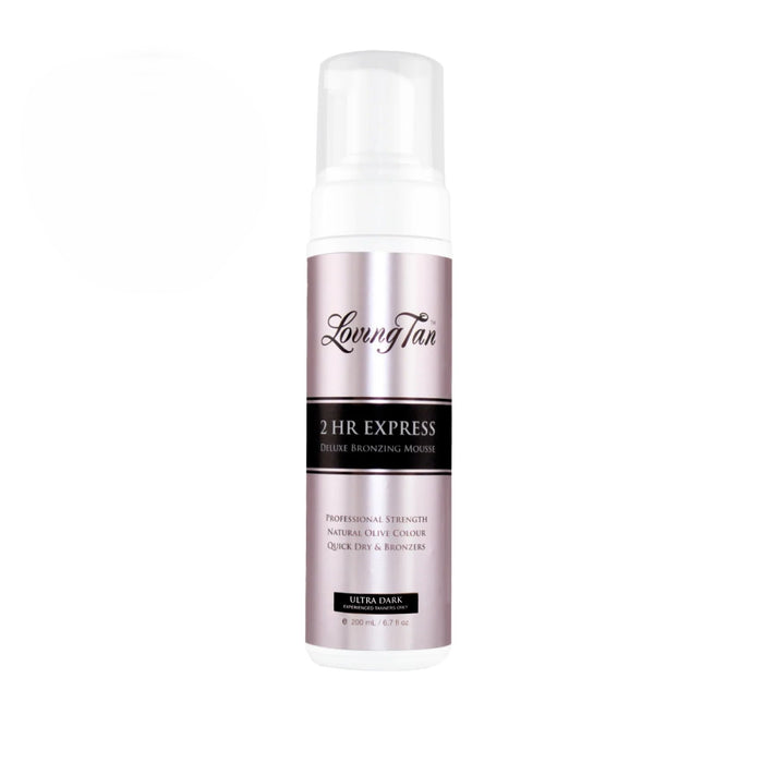 Loving Tan 2 Hour Express Mousse - Ultra Dark 200ml is a salon-inspired self-tanning mousse that provides an immediate natural-looking tan while developing into a deeper, darker tan that can be washed off after two hours.