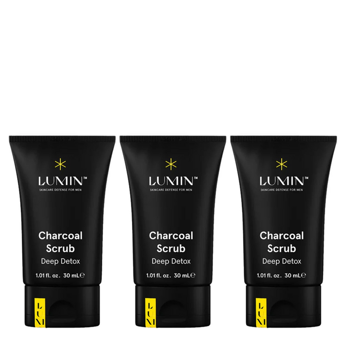 The Lumin Charcoal Scrub Trio Bundle is a skincare set designed to deeply cleanse and detoxify your skin.