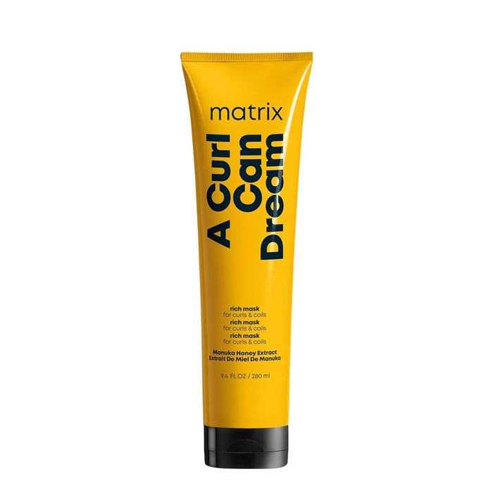 Matrix A Curl Can Dream Rich Mask 280ml is a deep hydrating mask that is perfect for those with curls and coils, as it preserves the pattern of curls and coils while providing intense hydration with the help of Manuka honey extract.