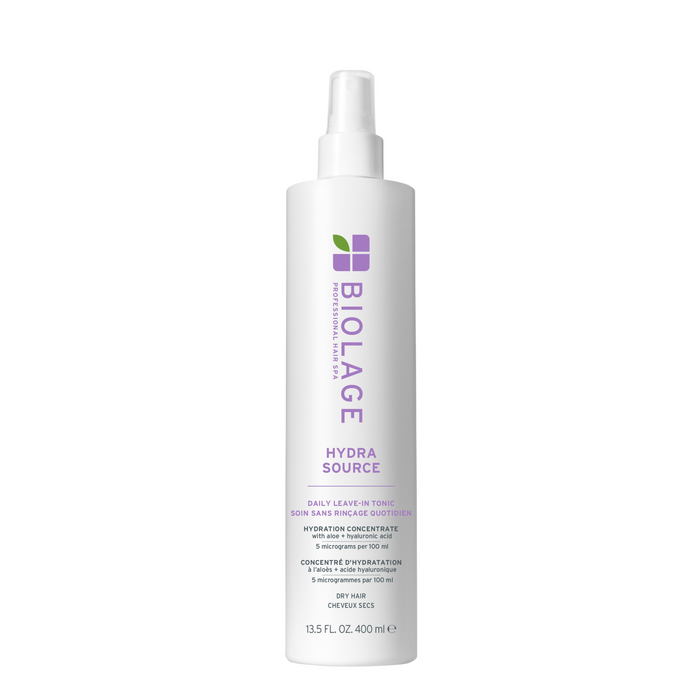 Biolage Hydrasource Daily Leave In Tonic 400ml is a moisturizing hair treatment that helps optimize moisture balance for healthy-looking hair, inspired by the aloe plant that never seems to dry.