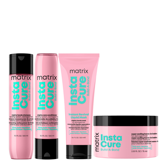 The Matrix Instacure Build-A-Bond Complete Quad Bundle is your ultimate solution for hair repair and strengthening.