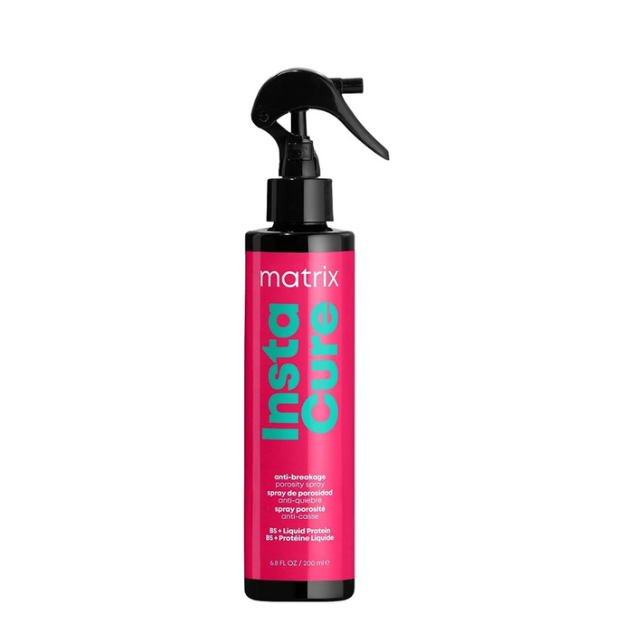 Matrix Total Results Instacure Anti-Breakage Porosity Spray 200ml is a haircare product that fills porosity and visibly reduces split ends, while smoothing cuticles to remove unwanted static and frizz.