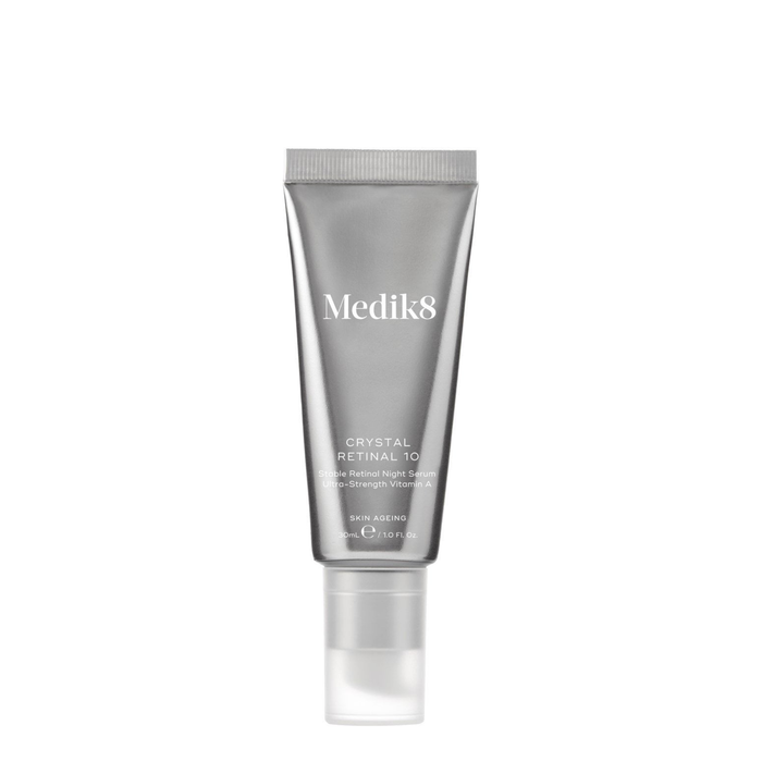 Medik8 Crystal Retinal 10 Night Serum 30ml is a ground-breaking overnight serum that visibly minimizes fine lines and wrinkles, firming and plumping the complexion to resurface skin texture and soften the face.