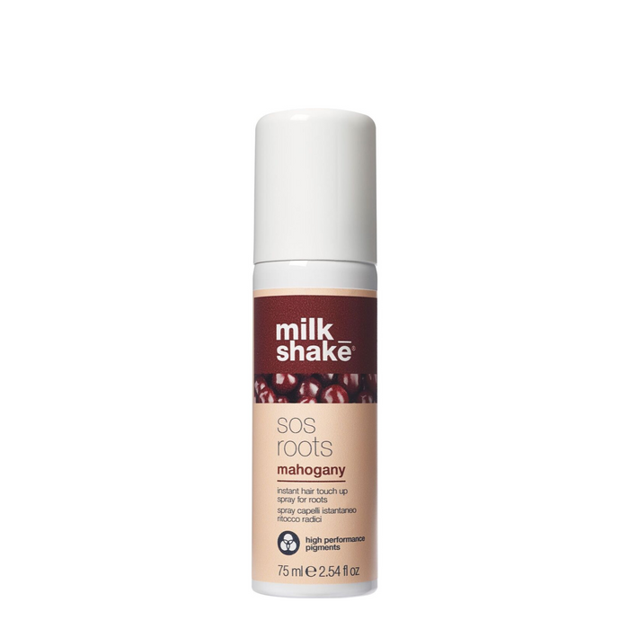 milk_shake SOS Roots Touch Up Spray Mahogany 75ml is a temporary root coverup spray that instantly conceals grey roots until the next shampoo.